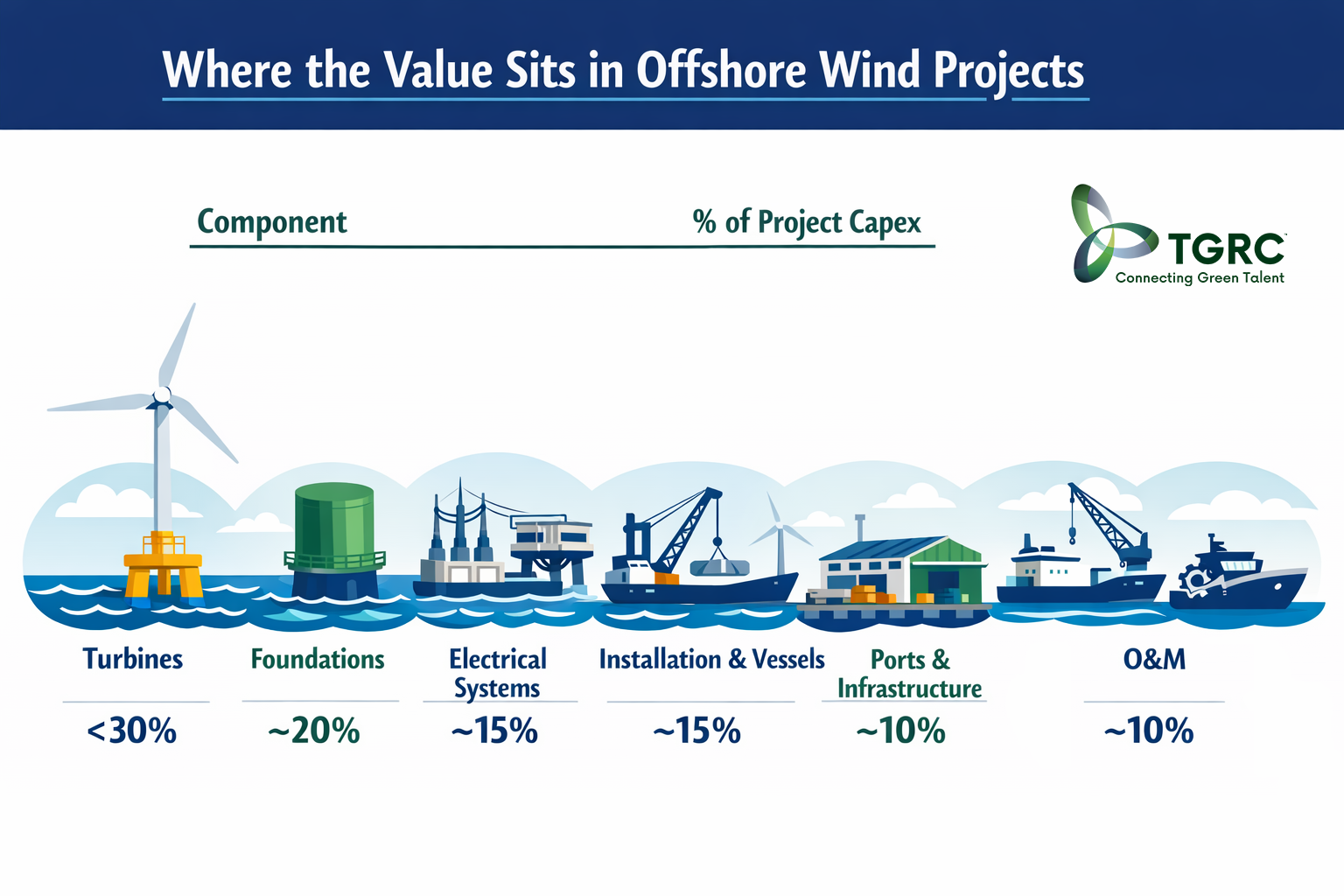 Monopile production solves just one piece of a considerably more complex puzzle. Japan's ambition extends far beyond foundation manufacturing - the country aims to achieve a domestic procurement ratio of 65% or higher by 2040, with some targets reaching 70%. This represents a significant shift when you consider that turbines account for less than 30% of total offshore wind capex in Japan. The remaining 70% consists of balance-of-plant components, including towers, cables, transmission systems, installation vessels, port upgrades, and operations.
